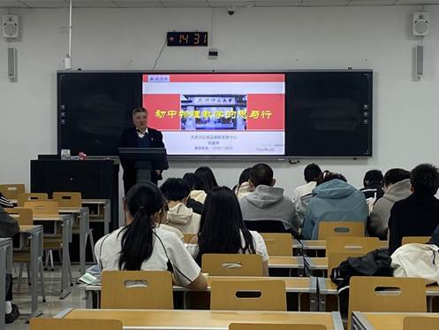 2026年04月09日下午,由教学办组织的“初中物理教学的行与思”专题讲座在明理楼D312教室顺利举行。本次讲座特邀天津市红桥区教师发展中心物理教研员、科研员,正高级教师郜建辉担任主讲,面向物理与材料科学学院教师及各专业本科生,旨在帮助学生系统理解初中物理教学的核心框架,提升从学科知识到教学能力的转化能力。