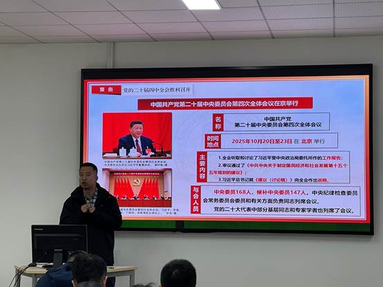 白启鹏副教授从深刻领会党的二十届四中全会的重大意义为切入点,紧密围绕实施科教兴国战略,强化现代化建设人才支撑,教育、科技、人才是全面建设社会主义现代化国家的基础性、战略性支撑,从坚持教育发展、科技创新、人才培养一体推进,深入实施科教兴国战略、人才强国战略、创新驱动发展战略,坚持教育优先发展、科技自立自强、人才引领驱动等三个方面,深刻阐释中国式现代化建设的教育、科技、人才战略。通过详实的数据分析、鲜活的案例阐释,号召广大干部教师要深刻抓住新一轮科技革命和产业变革历史机遇,加强原始创新和关键核心技术攻关,推动科技创新和产业创新深度融合,踔厉奋发,为学校高质量发展贡献力量。